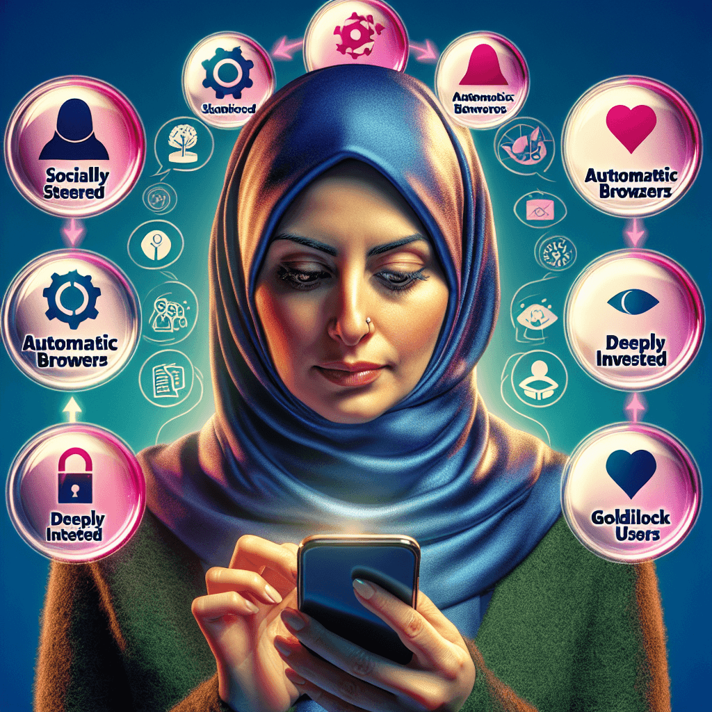 قسمت دراسة حديثة مستخدمي وسائل التواصل الاجتماعي إلى أربعة أنواع بناءً على دوافعهم وسلوكياتهم. النوع الأول هو المستخدمون الموجهون اجتماعيًا، الذين يشعرون بالضغط الاجتماعي لدخول المنصات. النوع الثاني هو المتصفحين التلقائيين الذين يستخدمون المنصات دون هدف واضح. النوع الثالث هو المستخدمون المتورطون بشدة الذين يربطون استخدامهم بأهدافهم الشخصية. وأخيرًا، المستخدمون الذهبيون الذين يحققون توازنًا صحيًا في استخدامهم.
